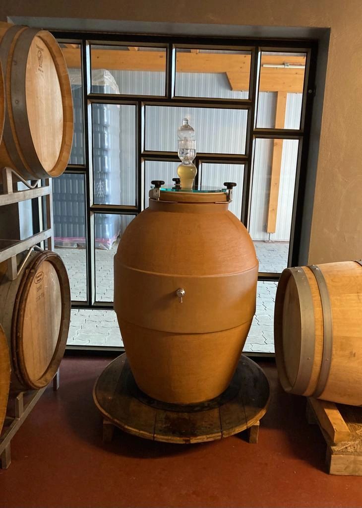 Physiologisch reife, gesunde Chardonnay Trauben wurden auf der Maische in der Terracotta-Amphore vergoren. Anschließend wurden die Beeren sanft mit einer hydraulischen Korbpresse gepresst. Der Wein reifte weitere Monate in dem Ton-Gefäß und wurde schonend mittels Schwerkraft in die Flasche gefüllt.